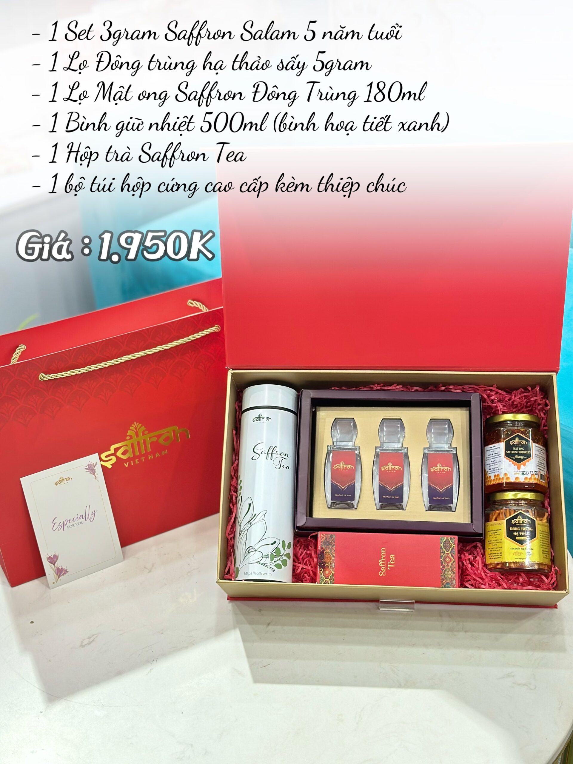 [HỘP QUÀ EMAD #18] Set 3Gram Saffron Salam + SBEE + ĐTHT + Saffron Tea + Bình giữ nhiệt xanh 500ml