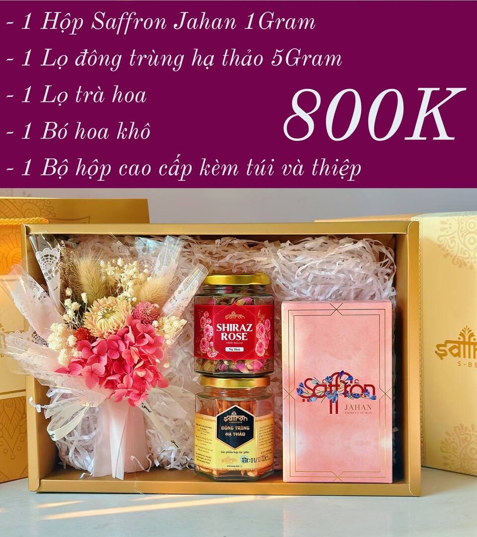 [Hộp quà ROYA có hoa #07] Saffron Jahan + Trà hoa + Đông trùng hạ thảo