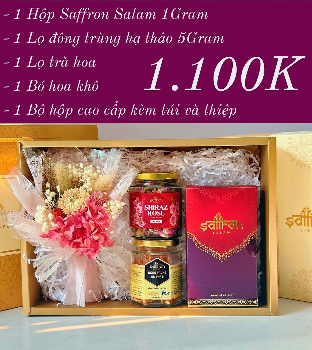 [Hộp quà có hoa #10] Saffron Salam và trà hoa + đông trùng hạ thảo