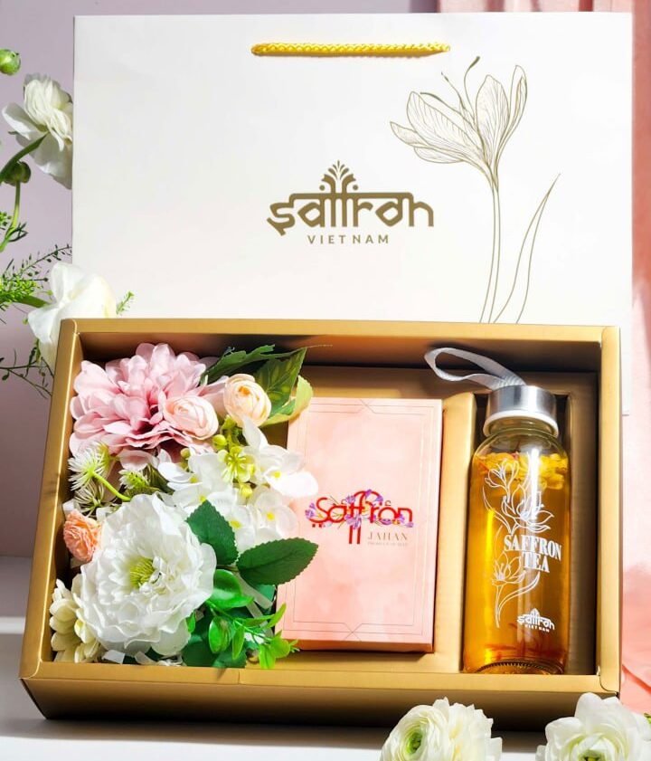 - Set quà saffron – nhụy hoa nghệ tây kèm bình nước vừa ý nghĩa, thiết thực, lại không lãng phí khi có thể sử dụng đều đặn hằng ngày, đem lại những tác dụng tuyệt vời cho sức khỏe.