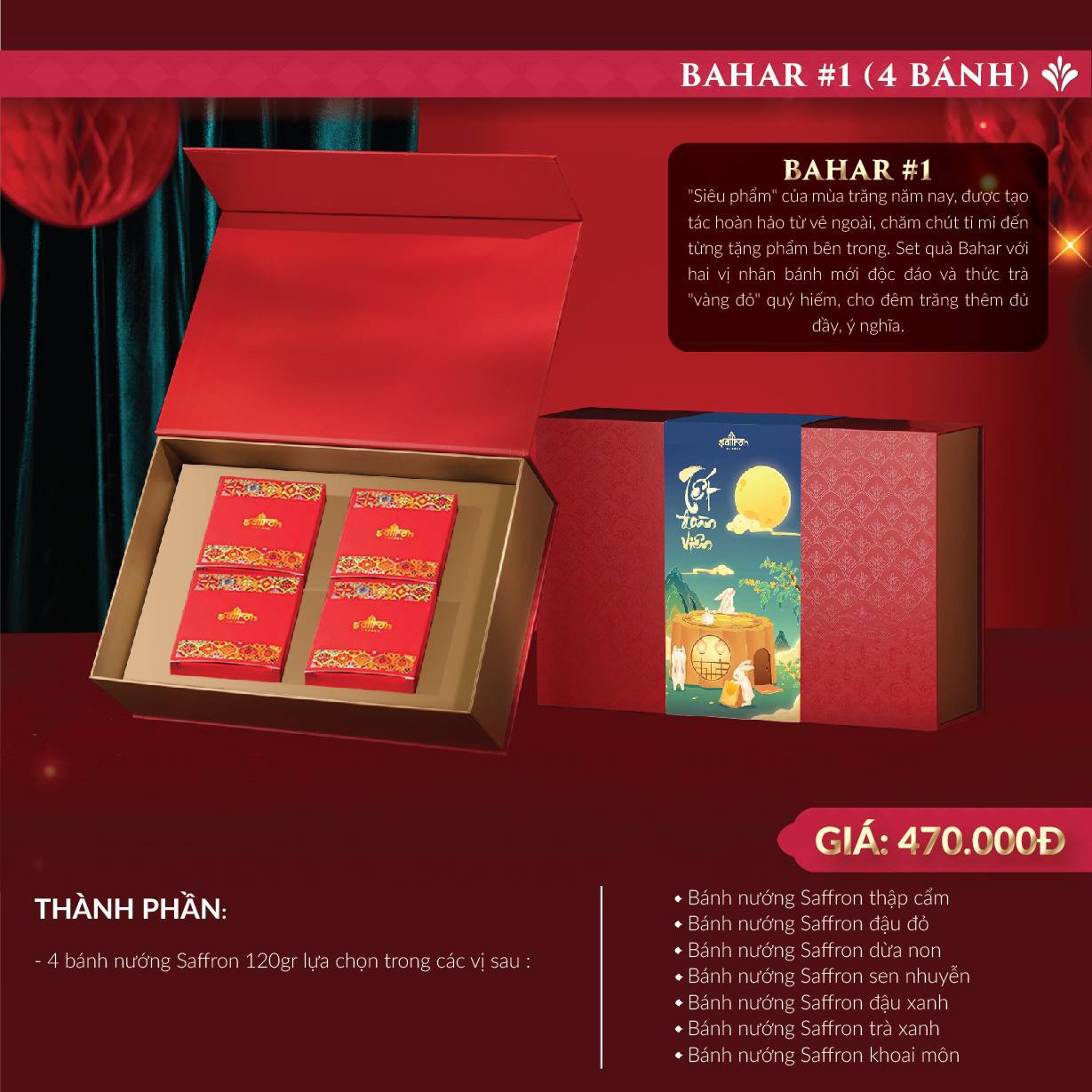Set BAHAR #1 – Hộp quà 4 bánh Trung Thu Saffron cao cấp 120gr