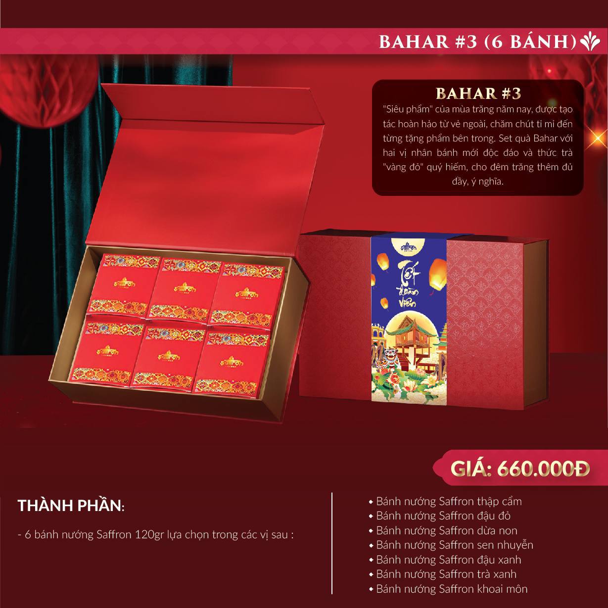 Set BAHAR #3 – Hộp quà 6 bánh Trung Thu Saffron cao cấp 120gr