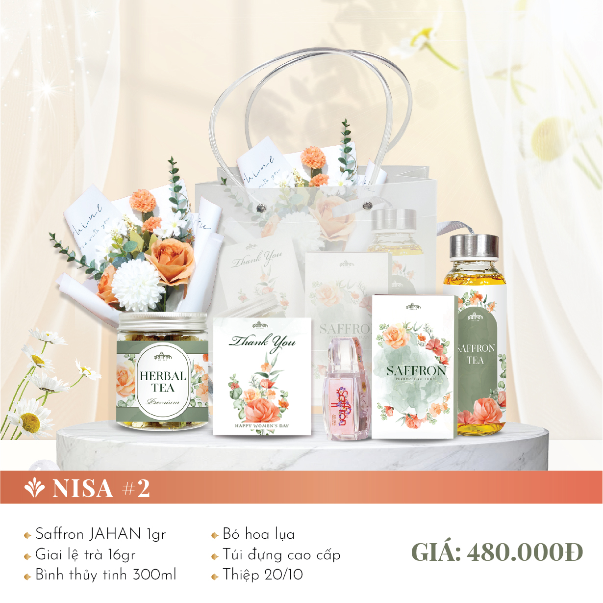 [Set quà NISA #02] Saffron Shyam, Giai lệ trà + bình thuỷ tinh