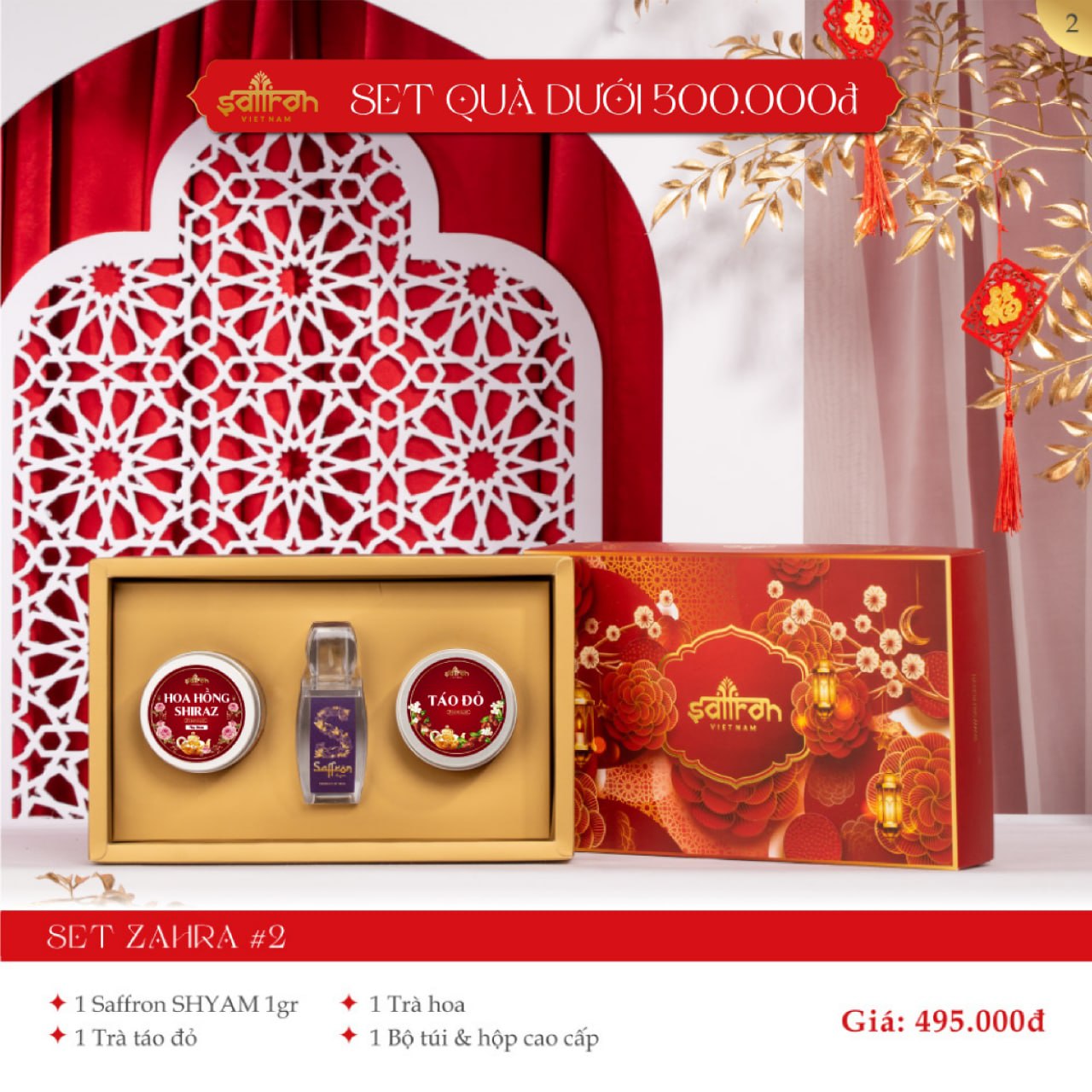 [HỘP QUÀ ZAHRA #2] Saffron Shyam 1gr + Trà hoa và táo đỏ